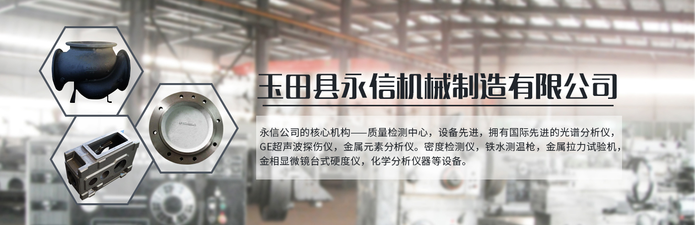 玉田縣永信機(jī)械制造有限公司總公司成立于2009年,注冊資金5000萬元人民幣,占地35畝,具備年產(chǎn)2萬噸減速機(jī)、閥體、電機(jī)座鑄件等的生產(chǎn)能力,是國家工信部批準(zhǔn)的鑄造準(zhǔn)入企業(yè)。公司是從事工程機(jī)械鑄件,機(jī)床鑄件生產(chǎn)和銷售的泵閥鑄件廠家,配備全自動生產(chǎn)設(shè)備和環(huán)保設(shè)施,加快綠色發(fā)展。公司以生產(chǎn)灰鑄鐵、球墨鑄鐵鑄、耐磨鑄鐵件、工程機(jī)械鑄件、機(jī)床鑄件為主。鑄造車間擁有自動和手工兩條造型生產(chǎn)線及液壓控制的覆膜砂制芯系統(tǒng)。鑄造過程含造型、電爐熔煉澆鑄、抖箱、噴丸拋光、打磨等工序。樹脂砂、覆膜砂、粘土砂造型生產(chǎn)工藝成熟穩(wěn)固,年產(chǎn)量超過2萬噸,其中,樹脂砂自動造型生產(chǎn)線,以批量大、標(biāo)準(zhǔn)高、誤差小的特點(diǎn)深得用戶信賴。樹脂砂造型生產(chǎn)模式以滿足異型和私人定制為特色,成為企業(yè)成長的重要組成部分。機(jī)械加工車間擁有3套加工中心、15臺數(shù)控車床及其它加工設(shè)備。永信公司的核心機(jī)構(gòu)——質(zhì)量檢測中心,擁有光譜分析儀、GE超聲波探傷儀,金屬元素分析儀,密度測試儀,鐵水測溫槍、金屬拉力實(shí)驗(yàn)機(jī)、金相顯微鏡、臺式硬度儀